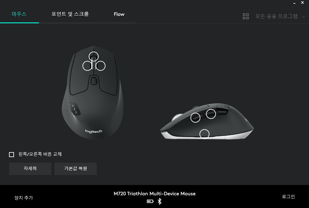 마우스를 블루투스던 USB로 연결하면 자동으로 설치할수 있는 로지텍 option 프로그램이다