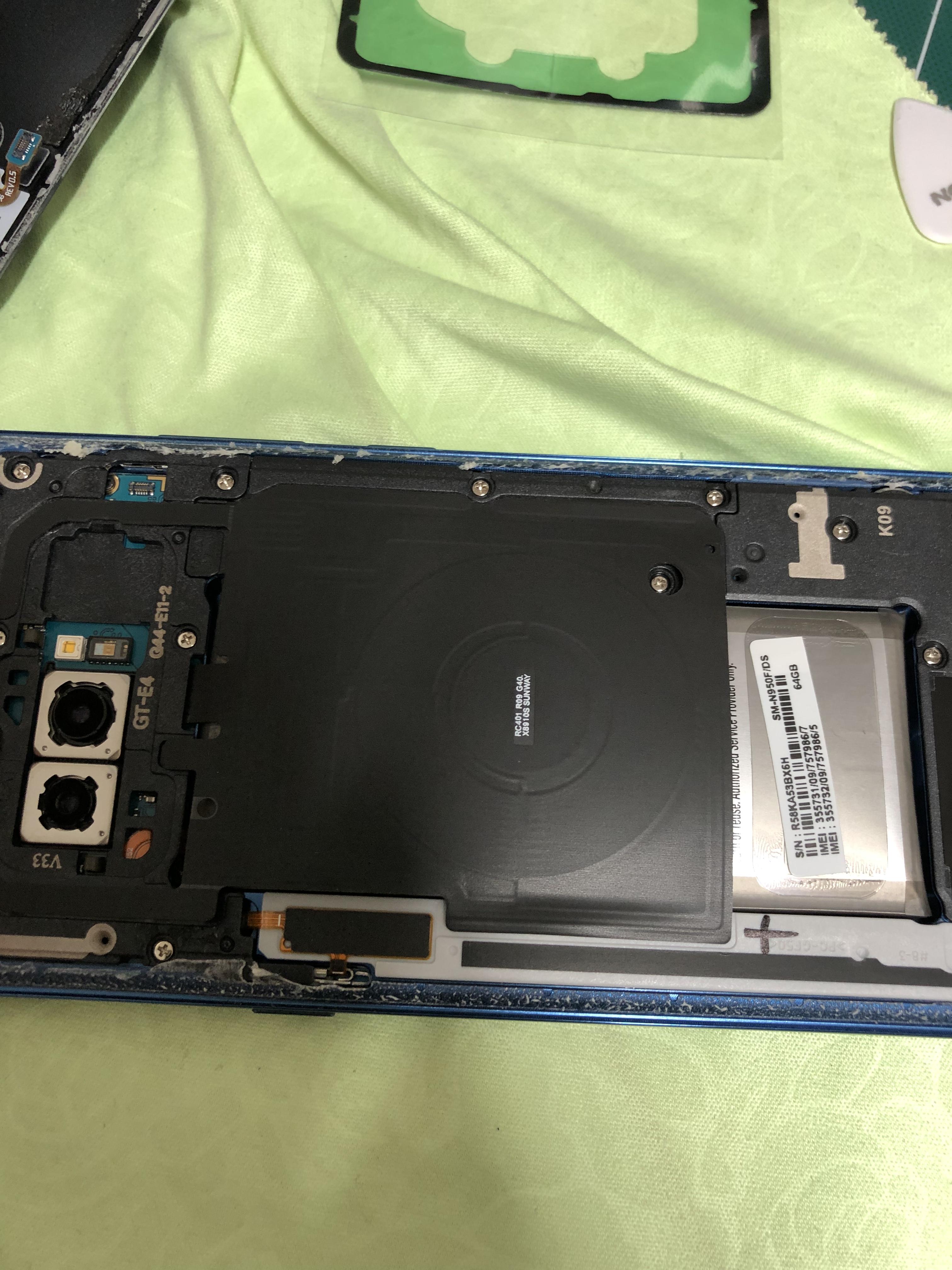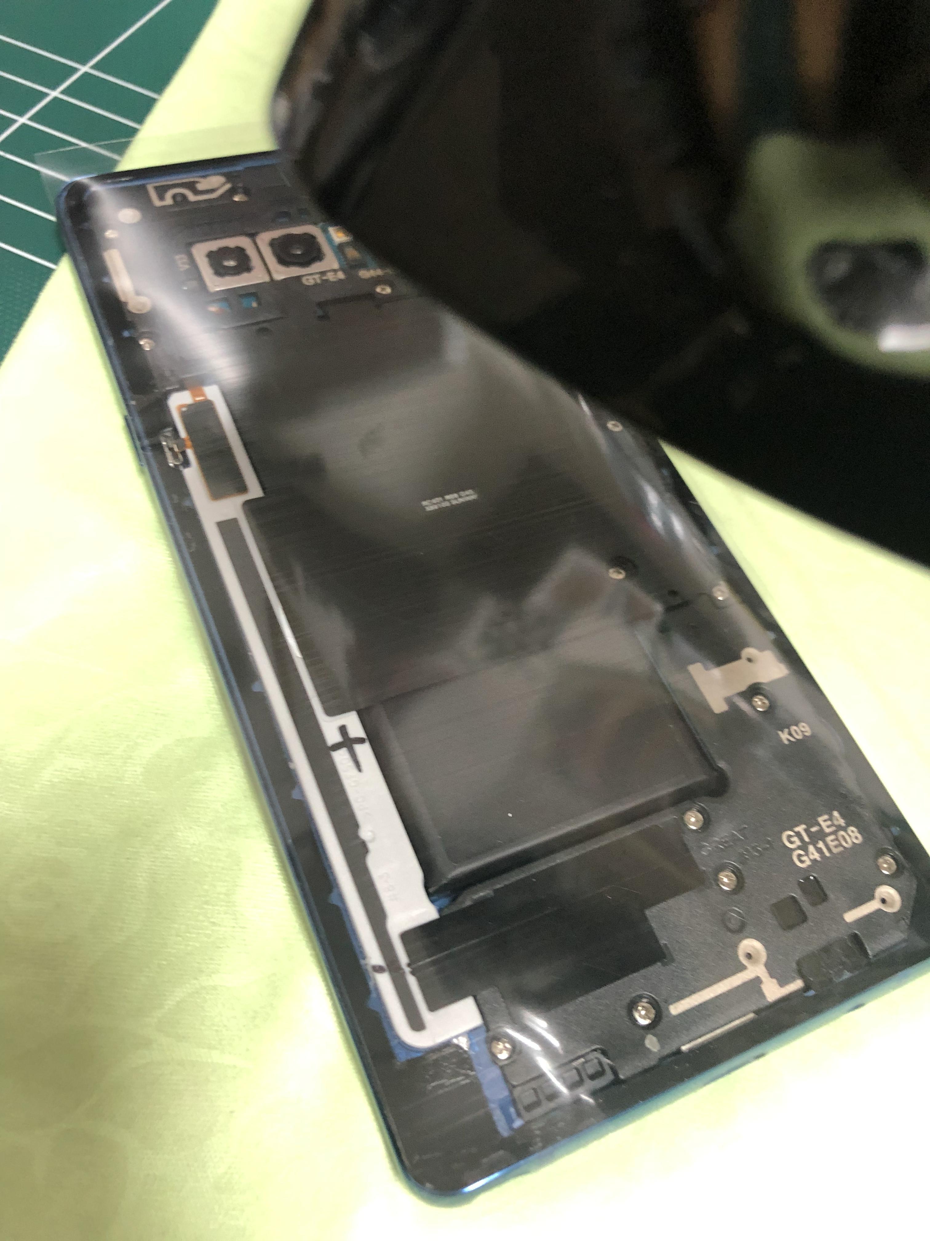 먼저 해야 할 일은 열풍기로 노트8 뒷면 가열이다.. 볼트식 결합이 아닌 접착식 결합이라..