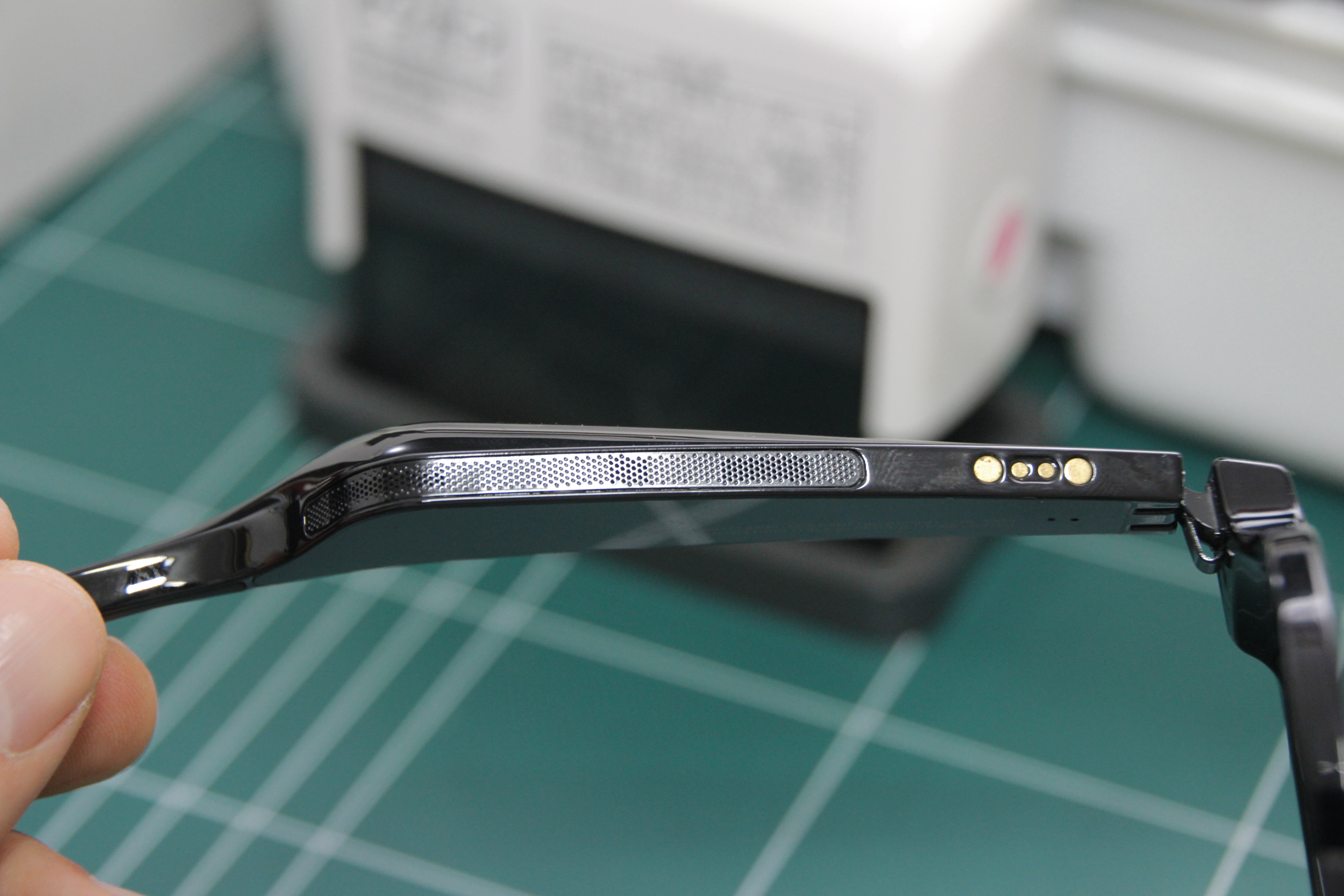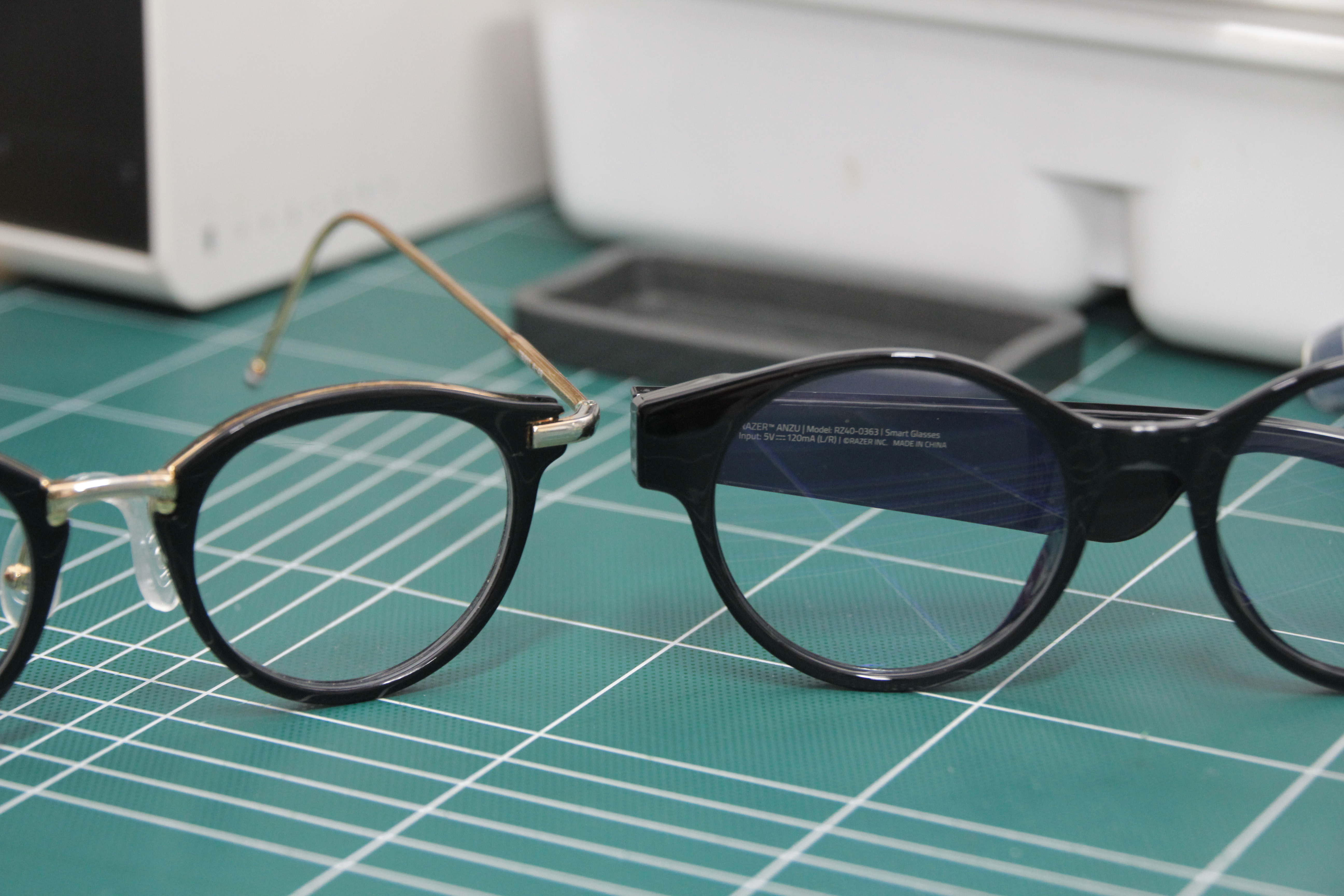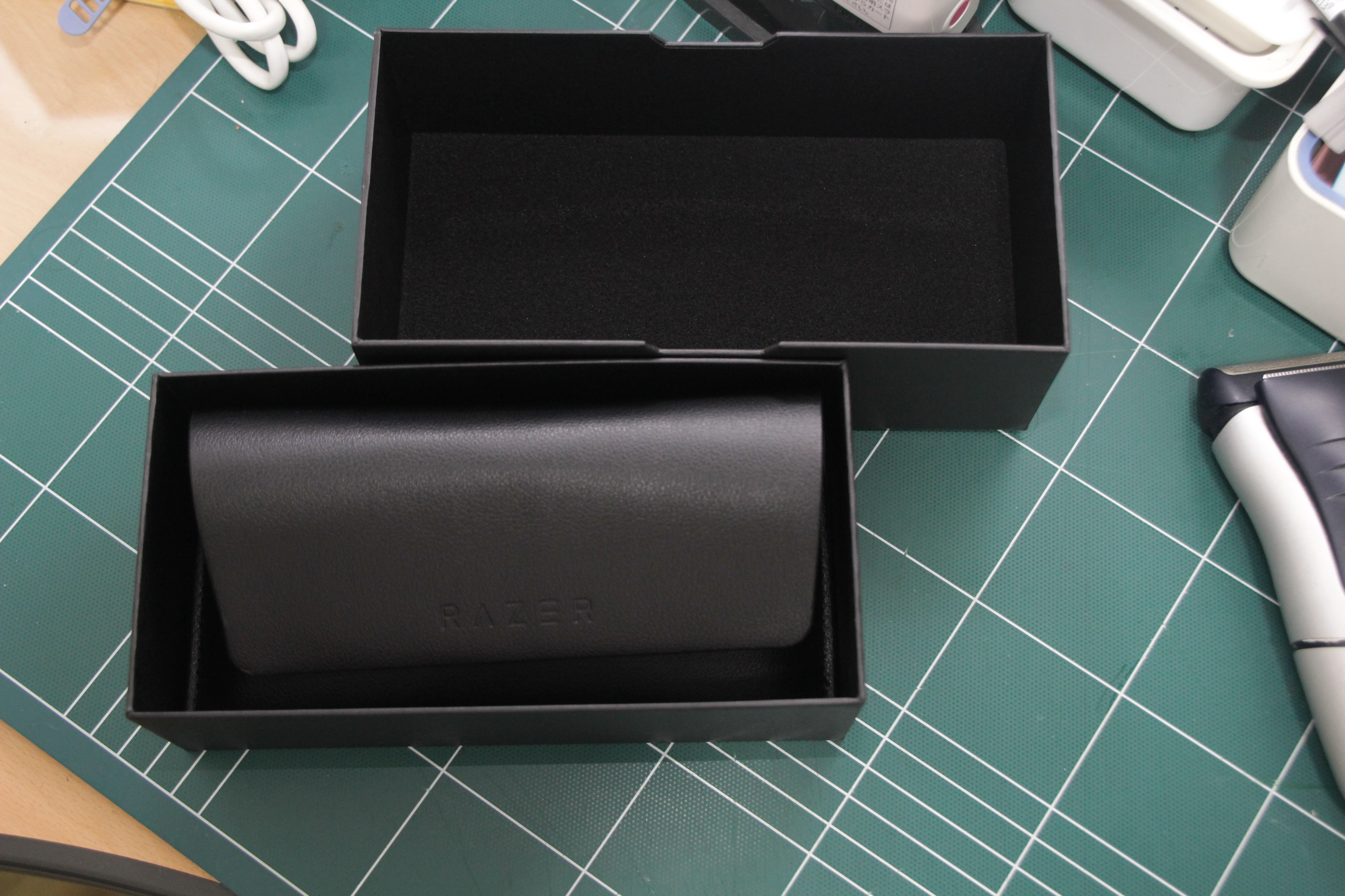 사이드에 RAZER 가 각인 되어있어 얼핏 나는 안경이 아닌 기기이다 라고 표시해준듯하다.