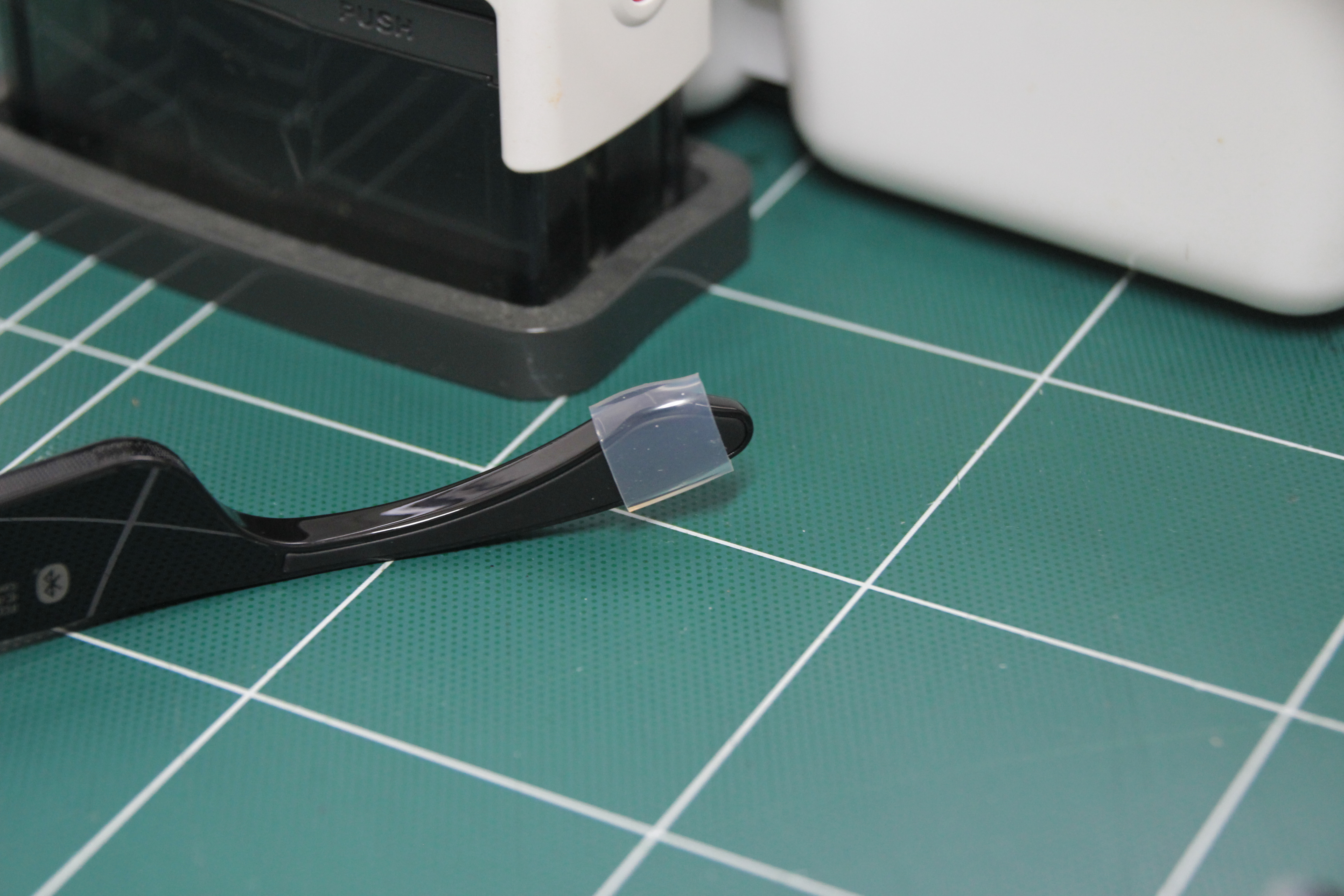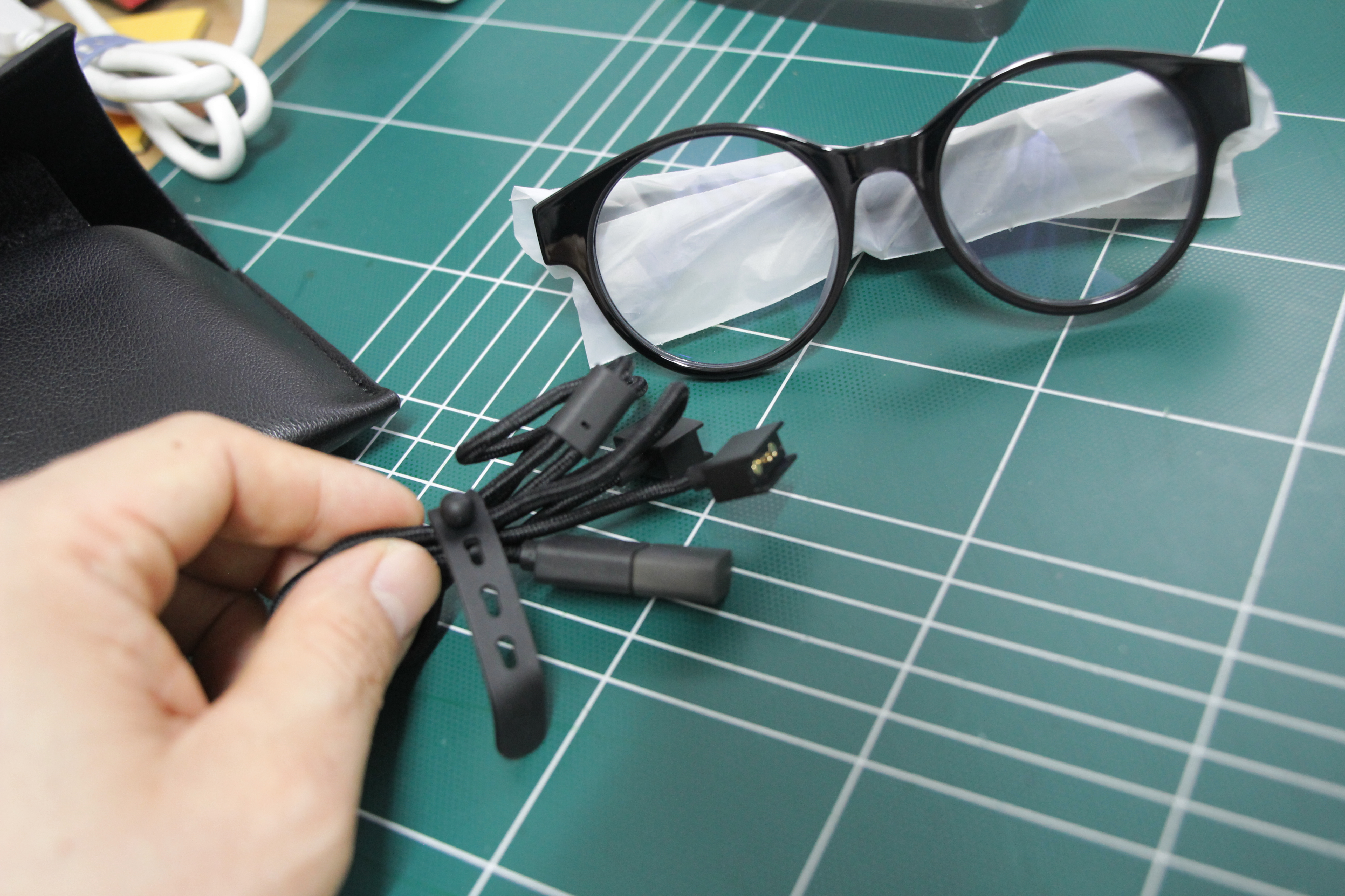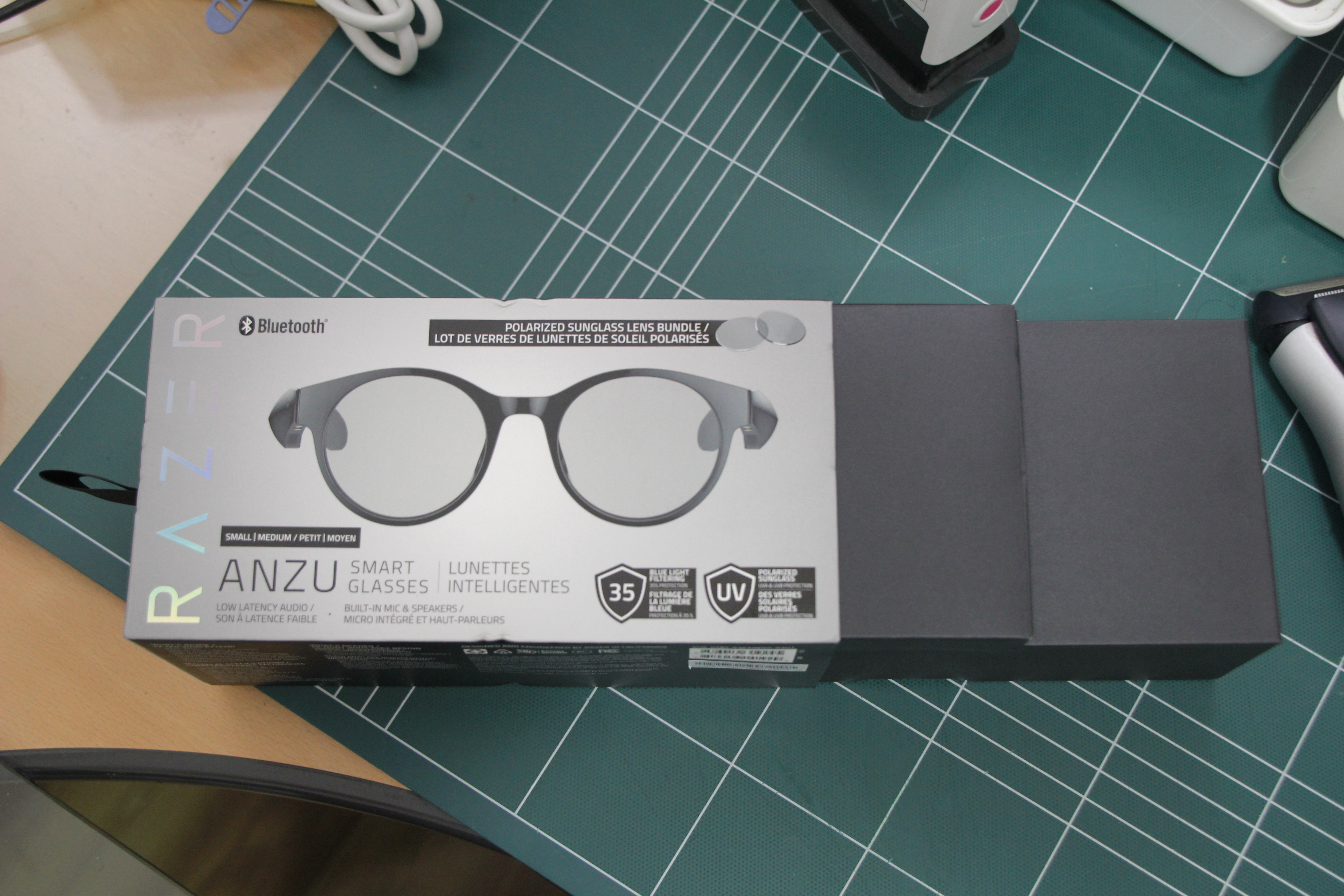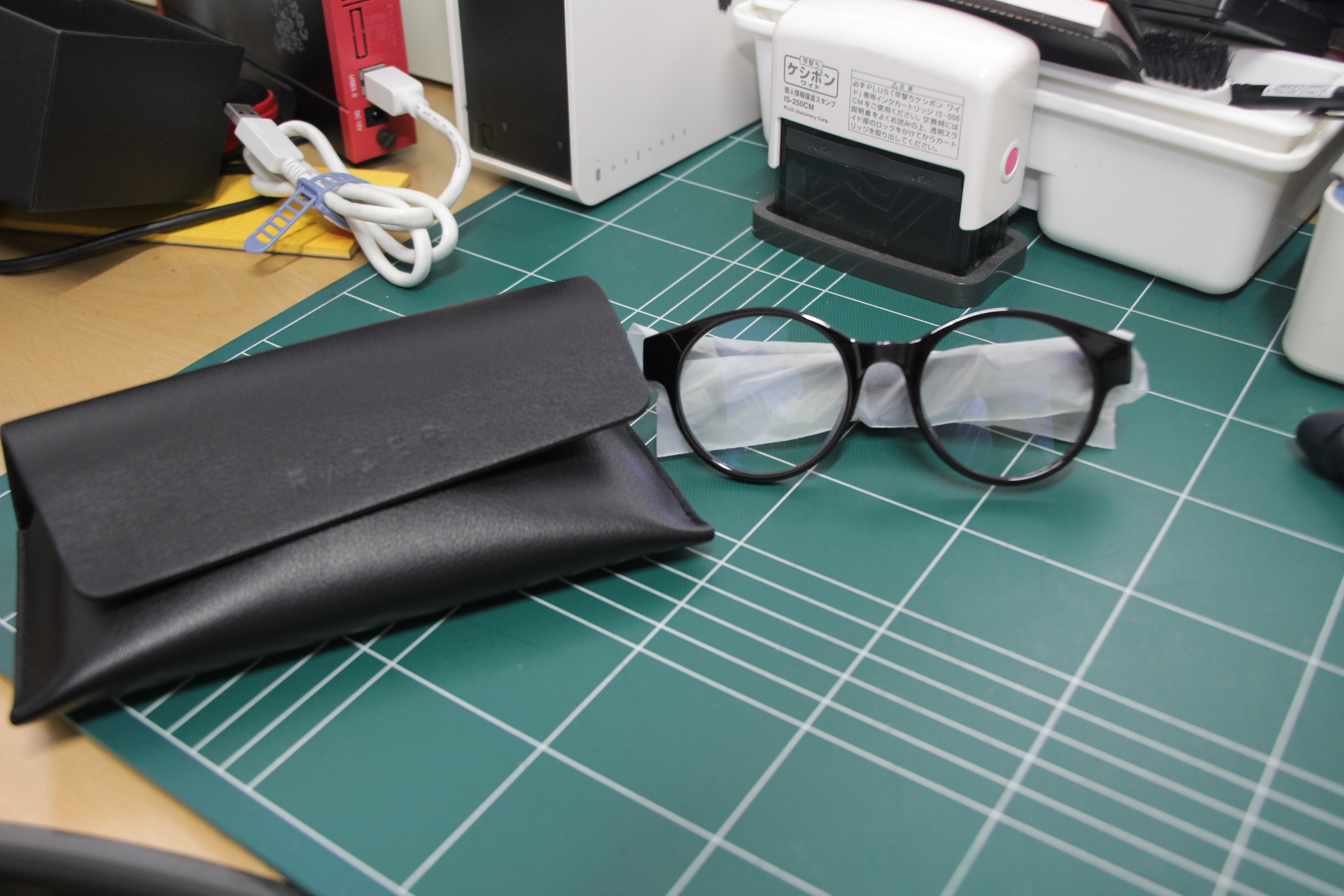 사이드에 RAZER 가 각인 되어있어 얼핏 나는 안경이 아닌 기기이다 라고 표시해준듯하다.