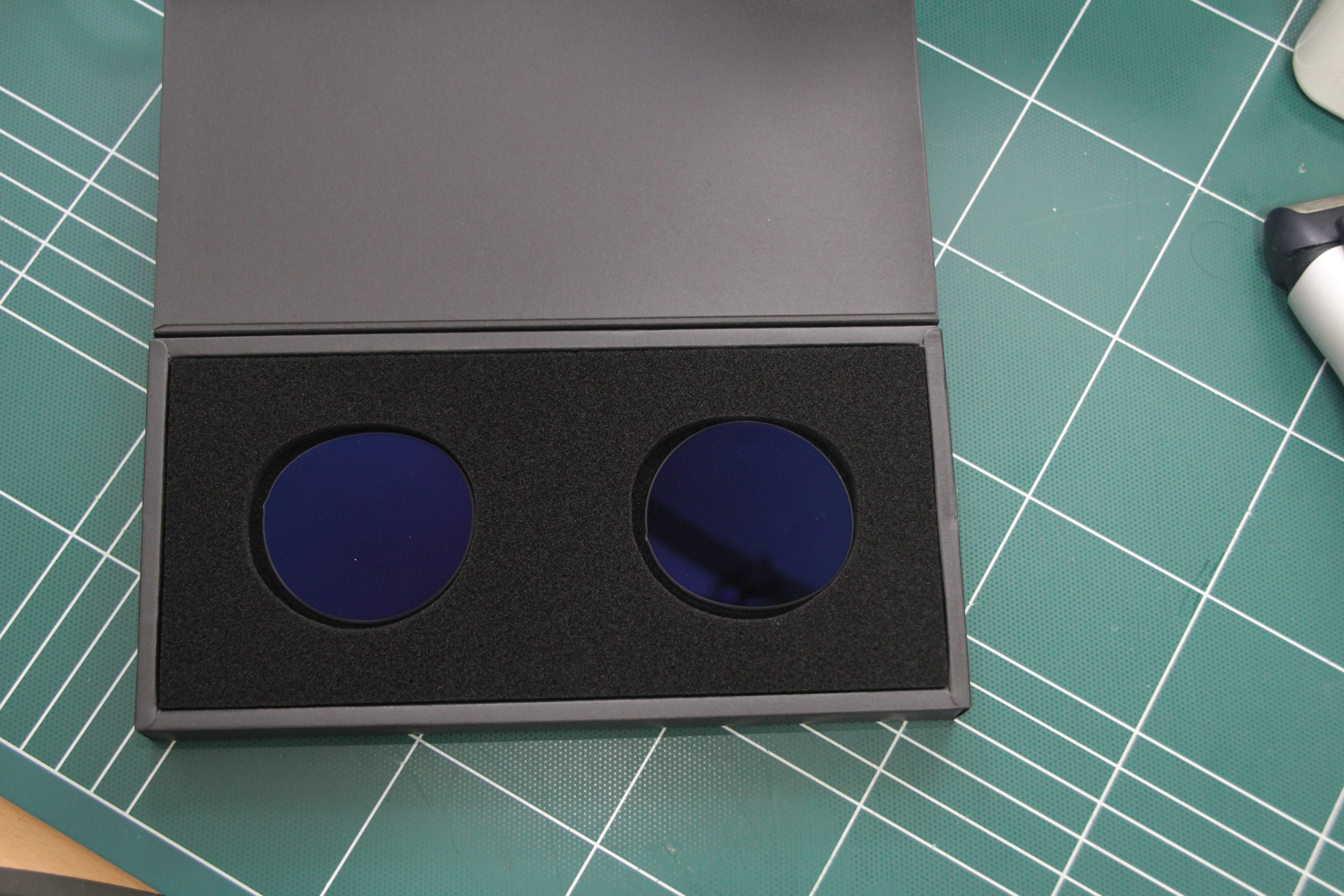 푸른색의 여분의 렌즈가 보인다.. 이건 교환이 조금은 쉬운 안경이라 선글라스 렌즈 로 보인다