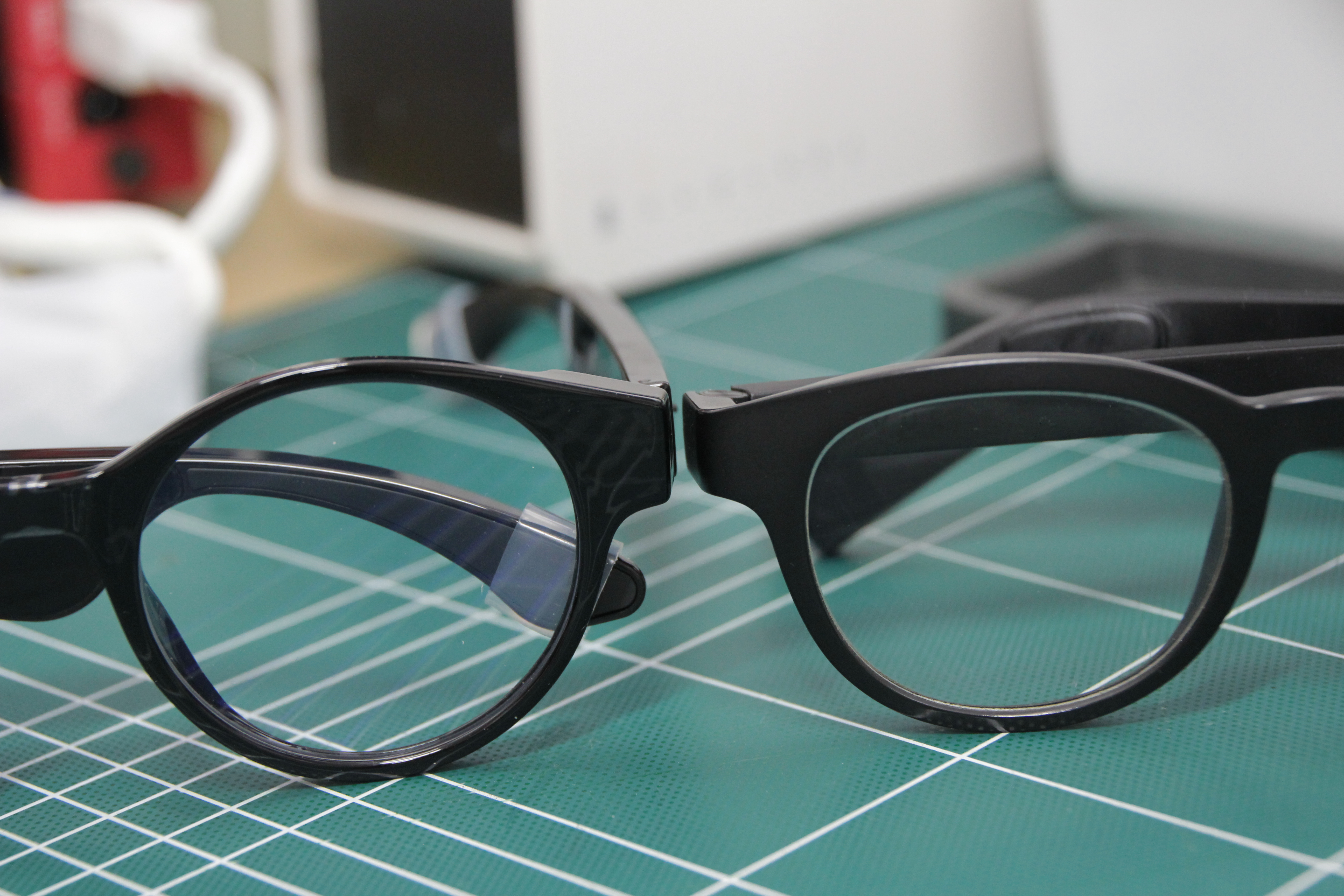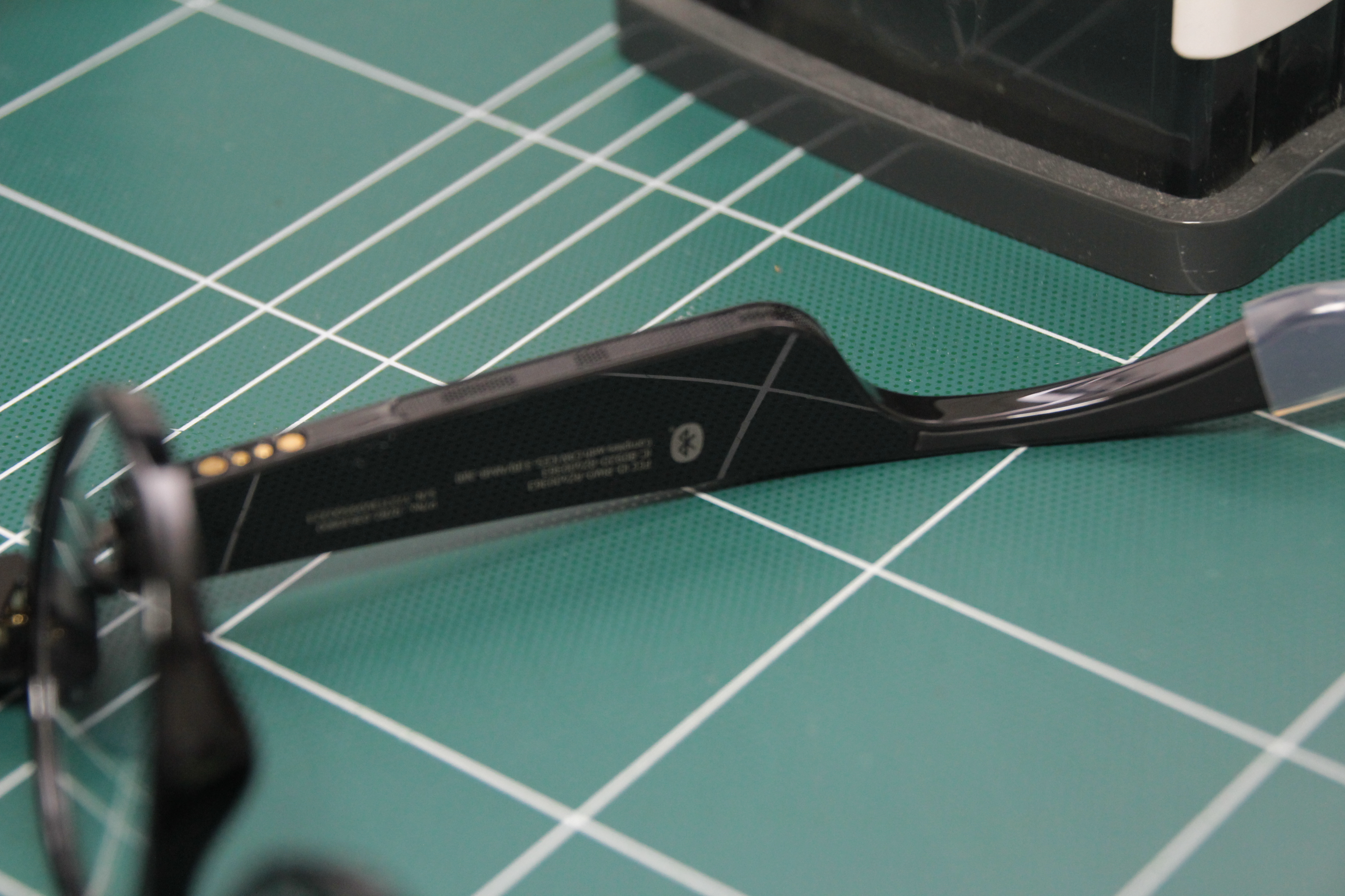 사이드에 RAZER 가 각인 되어있어 얼핏 나는 안경이 아닌 기기이다 라고 표시해준듯하다.