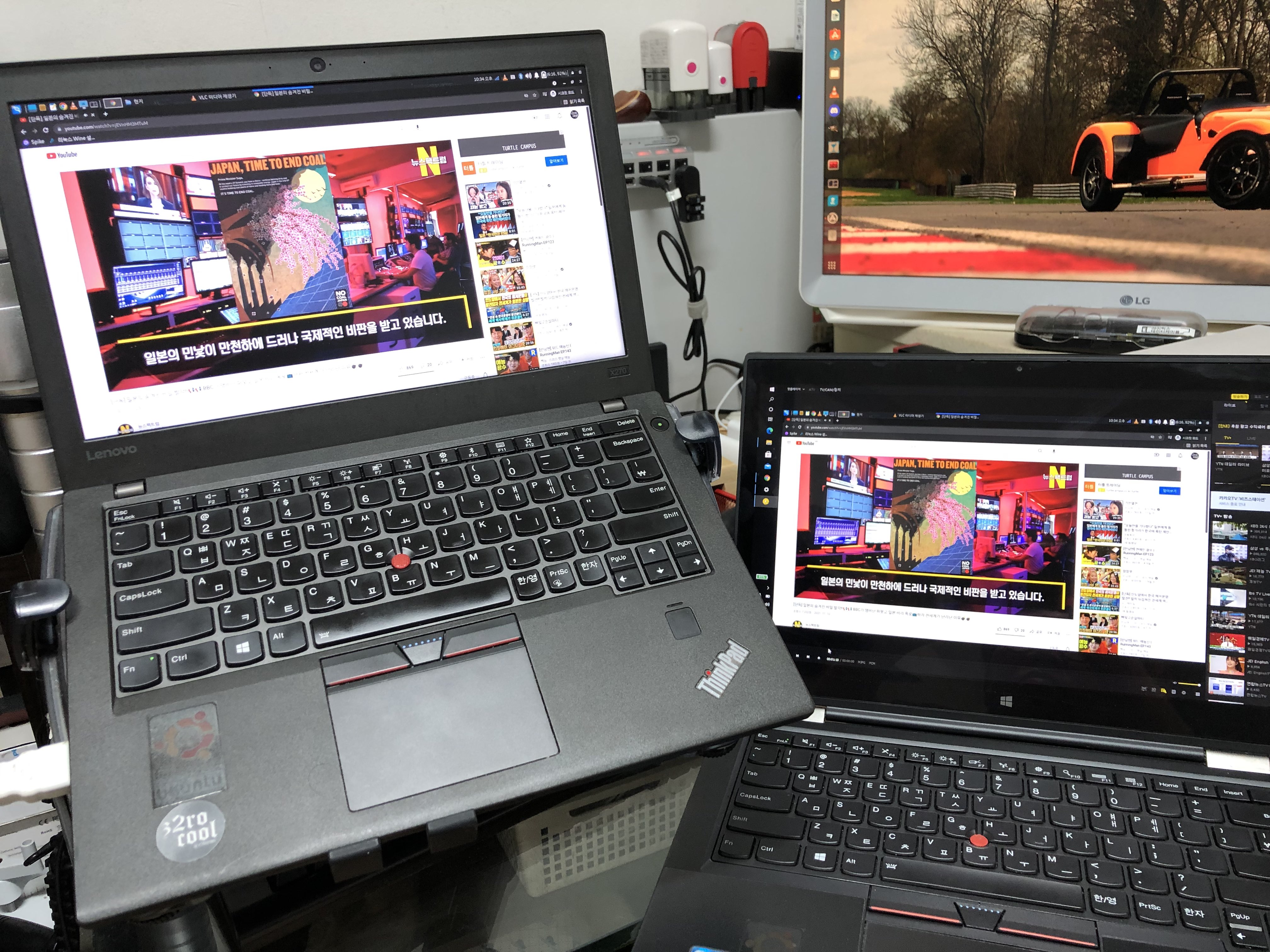 2.리눅스에서도 연결이 가능하다 두대컴퓨터 화면을 같이 볼수 있다