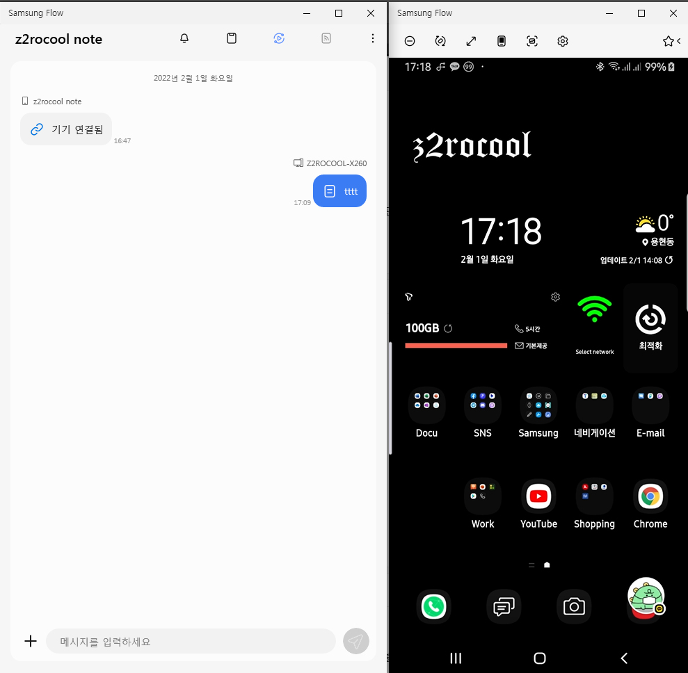 # 삼성 플로우의 최고장점은 ... 휴대전화에 설치된 모든 프로그램을 약간의 불편함(?)을 감수하고 나면 사용이 가능하다는것이다