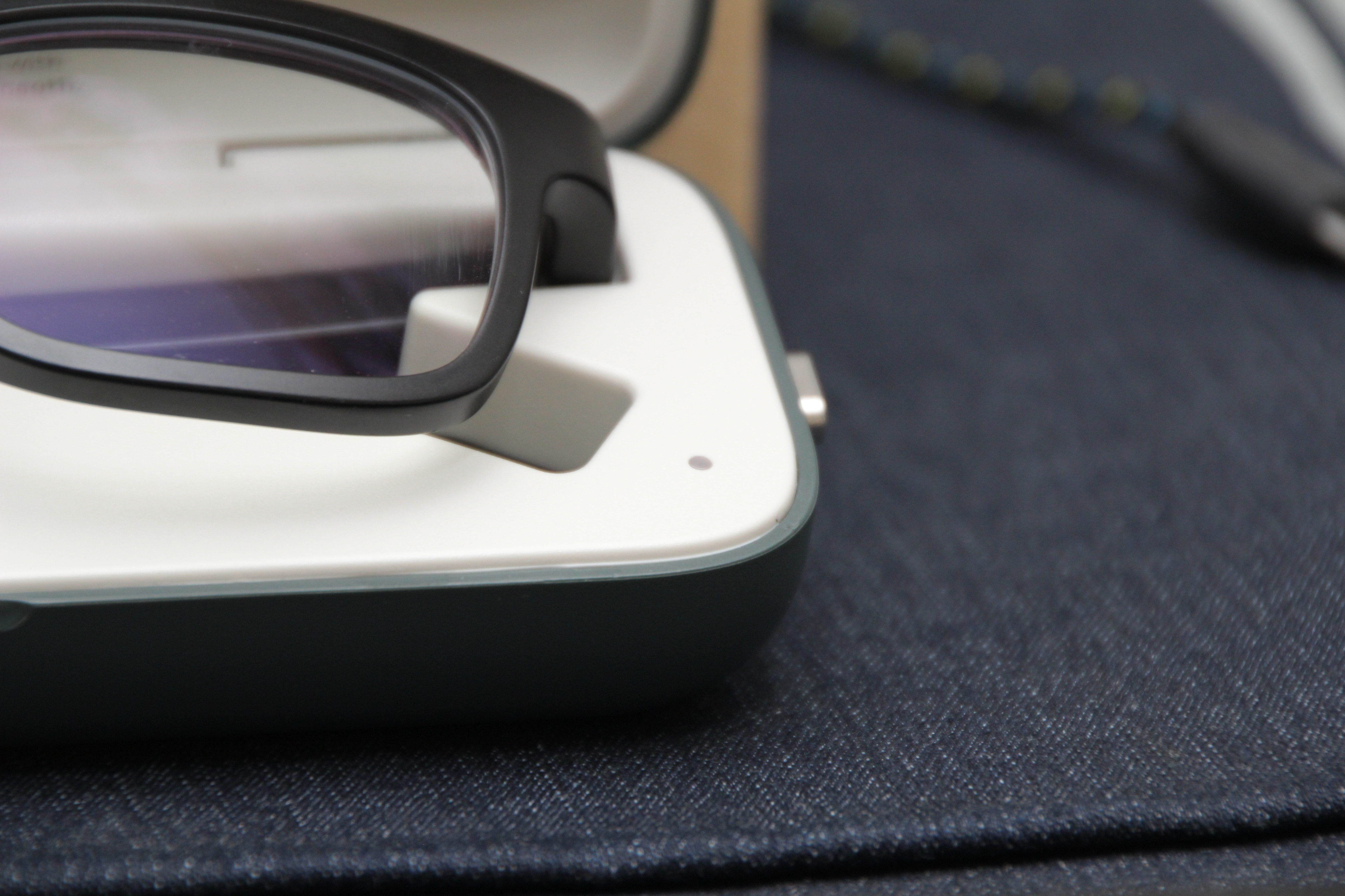 케이스 안에 곤히 놓여있는 본체 스마트글라스.. 안경도수문제로 먼저 안경을 내눈에 맞게 장착했다..