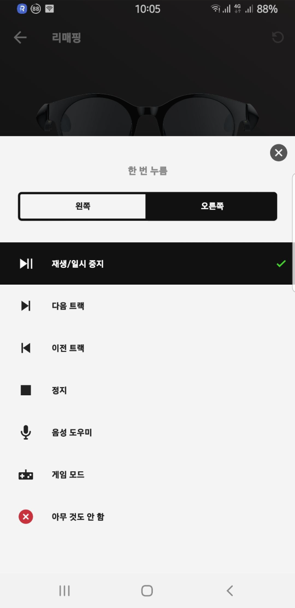 연결은 간단한 편이다 App을 실행하고 Anzu smart glasses 선택하고 안경을 착용하면 검색후 연겨리 가능하다