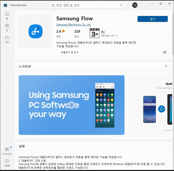#1. 원하는 컴퓨터(windows 구동)에 삼섬플로우를 설치한다...(마이크로스프트 스토어에서)
