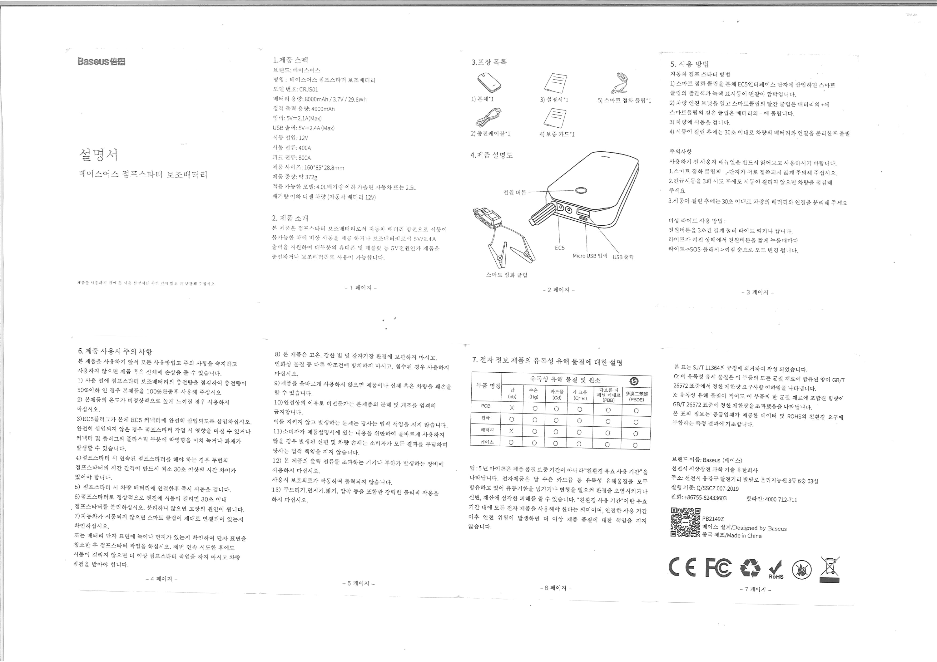 베이스어스 점프스타터 보조배터리 ... 사용설명서....